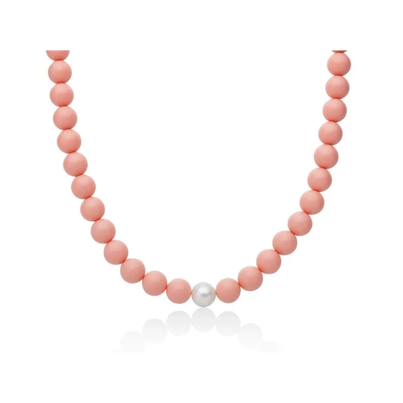 La Collana Miluna PCL4821 è un gioiello raffinato, perfetto per aggiungere un tocco di colore e delicatezza al tuo look. È realizzata in Argento 925/1000 ed è impreziosita da una perla di colore bianco da 8,5-9 mm e un agglomerato di corallo color pelle d'angelo da 8 mm, il tutto rifinito con microfusione.