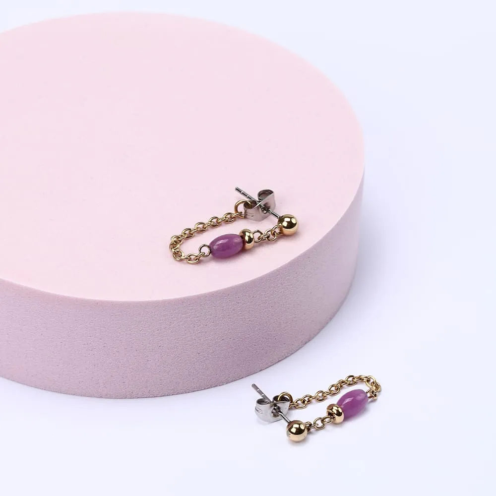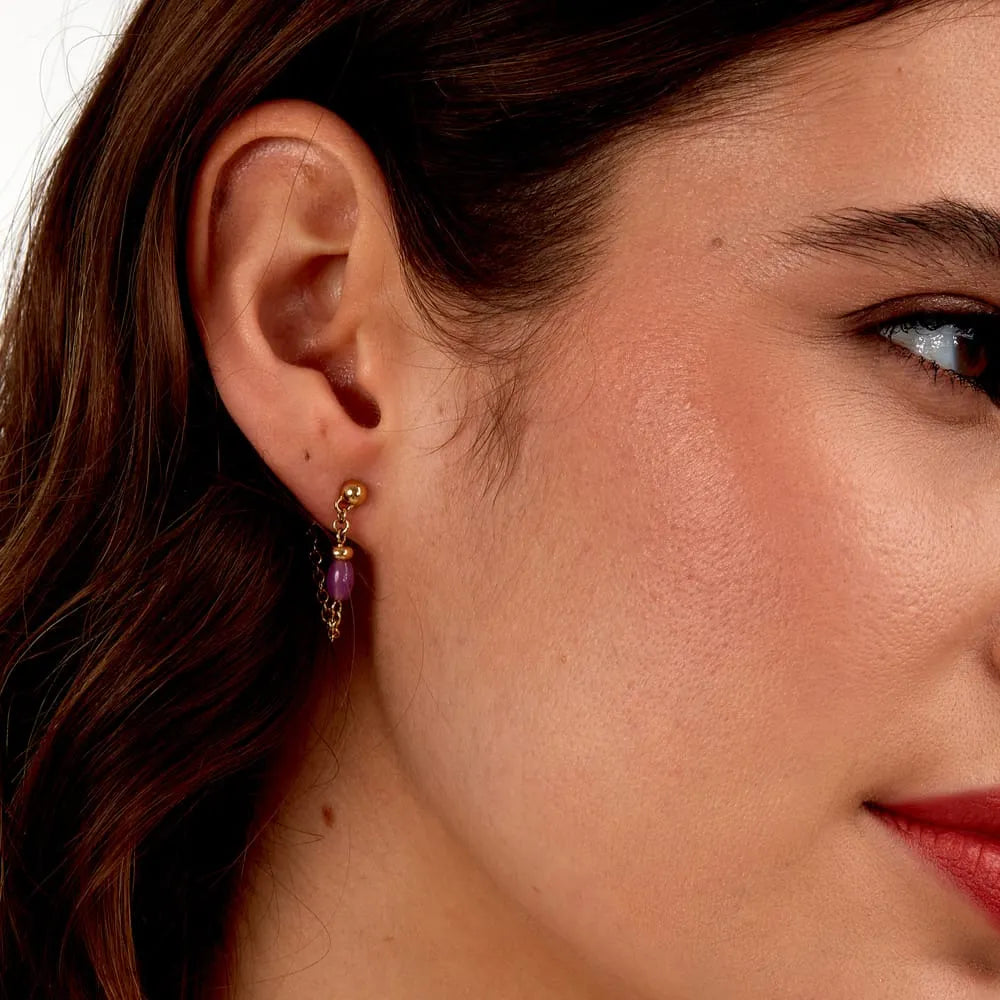 Orecchini da donna Morellato, modello Colori SAXQ07, di acciaio color argento e oro con pietra viola al centro, diametro delle perle 6.5*4.5mm. Peso di 2,270 gr e certificato di autenticità incluso nell'originale confezione Morellato. Perfetti per un look elegante e quotidiano.