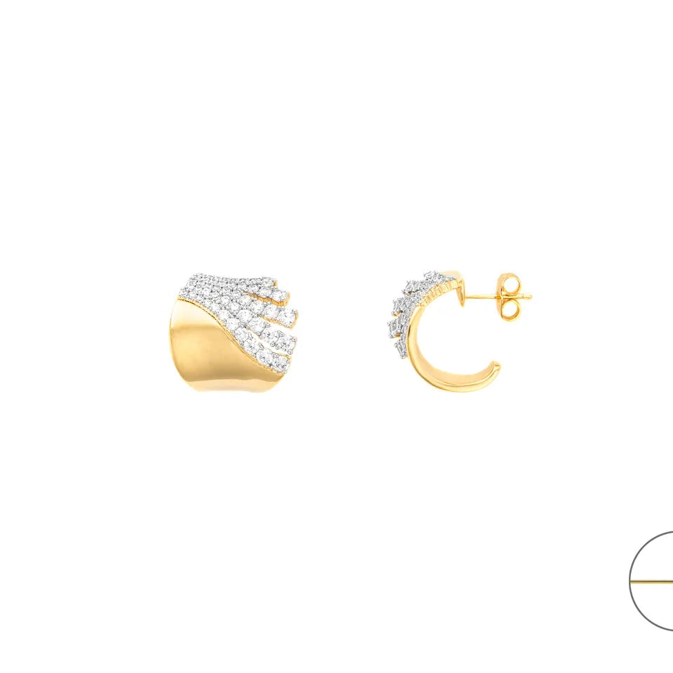 Gli Orecchini Cesare Paciotti 4US Gold, disponibili su Arena Gioielli, sono un gioiello dal design scultoreo e lussuoso che cattura l'essenza dell'eleganza contemporanea. Realizzati in ottone di alta qualità con una preziosa finitura in PVD oro, questi orecchini a semicerchio presentano una silhouette avvolgente e asimmetrica, impreziosita da un pavé di zirconi bianchi che dona una luce straordinaria e sofisticata al viso.