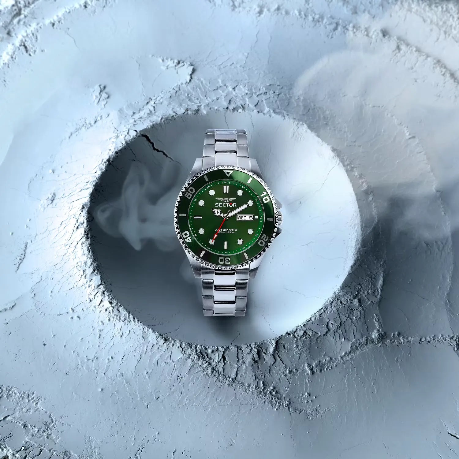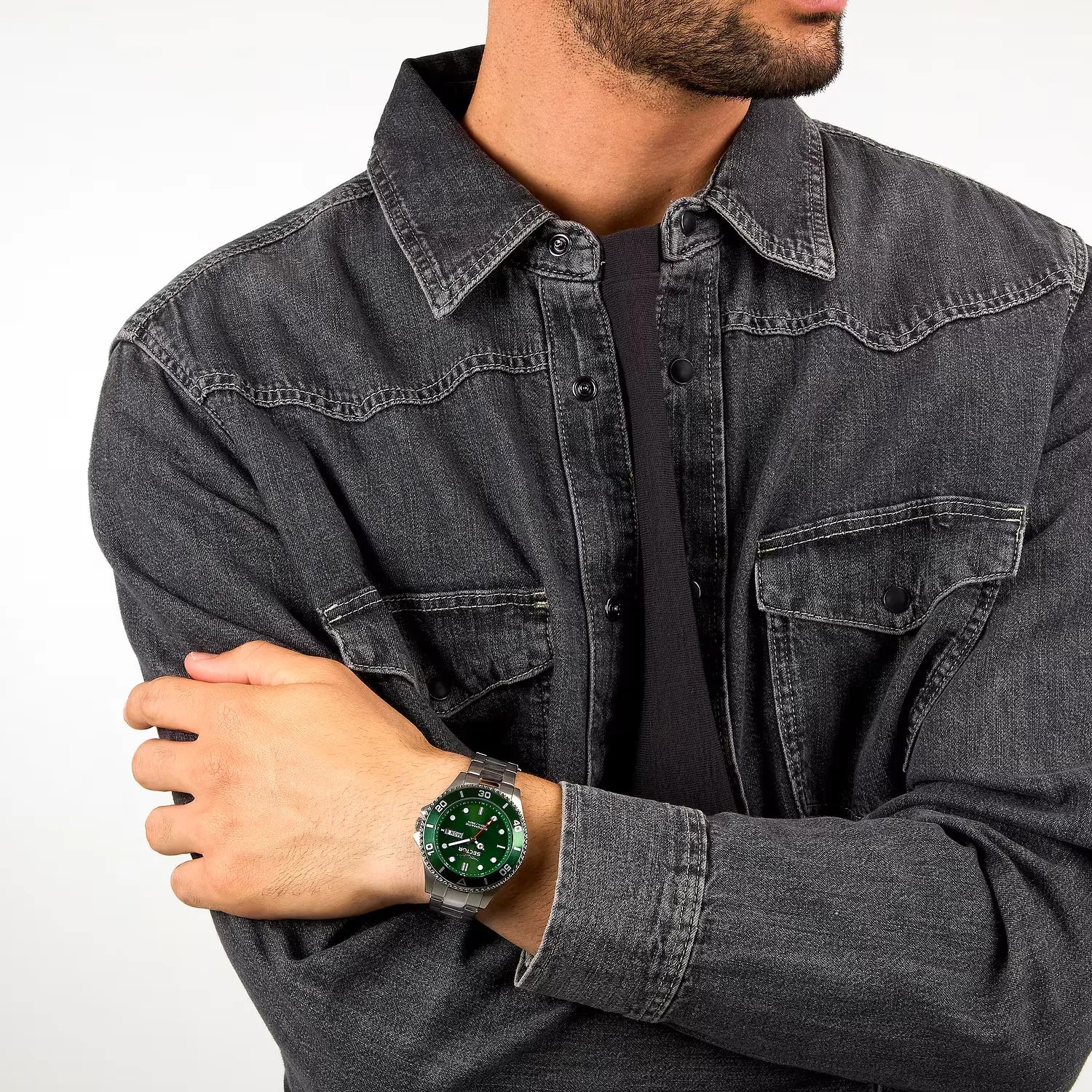 La cassa da 43 mm con finitura lucida e satinata e il bracciale in acciaio color silver si abbinano a una vivace ghiera e un quadrante di colore verde, conferendo un tocco di energia al look. È equipaggiato con un affidabile movimento automatico ed è resistente all'acqua fino a 10 ATM, rendendolo ideale per l'uso quotidiano e le attività acquatiche.